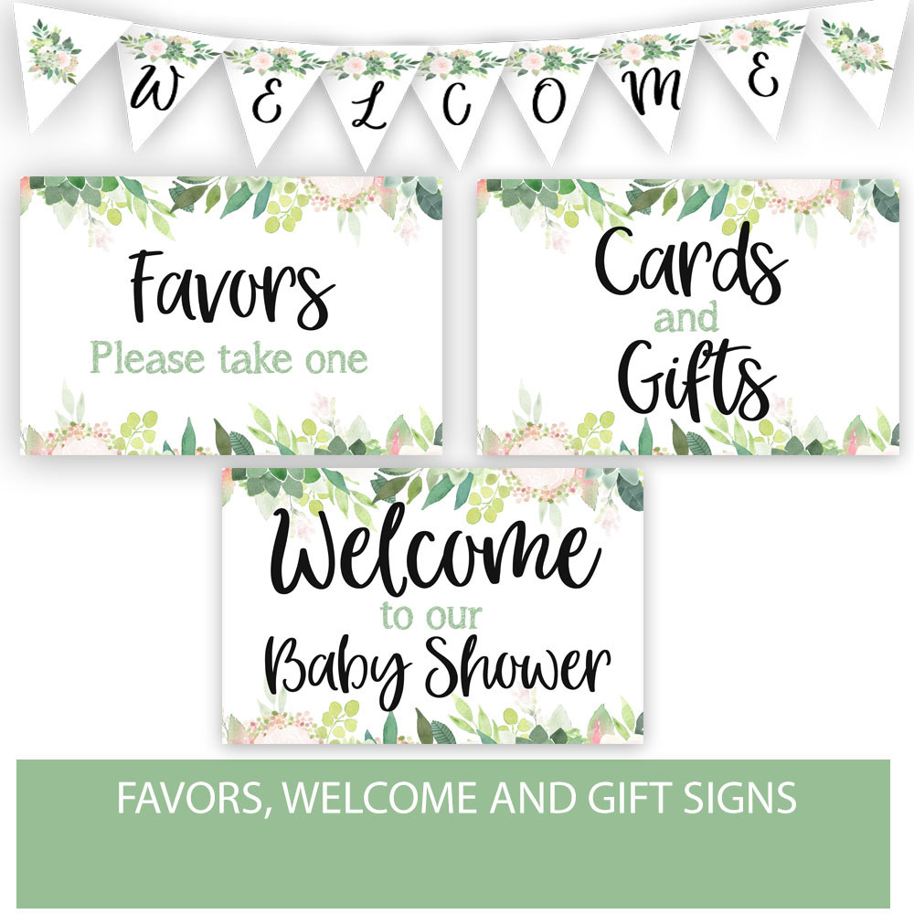 Here are all of your Baby Shower games, signs, invites, decor, and more. Ready-made and beautifully matching!